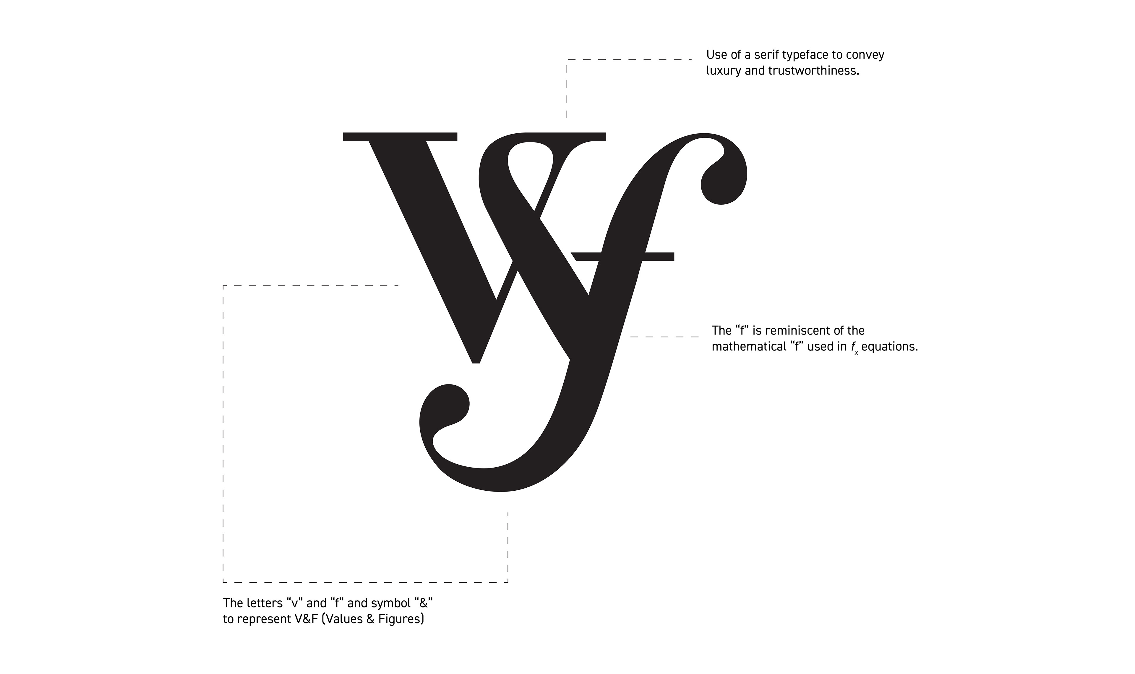 It was important for the Values & Figures logo system to include an icon that could make the brand distinctly recognizable and somehow echoed services they offer. The icon that emerged not only showcases their initials, but also nods at references to math.